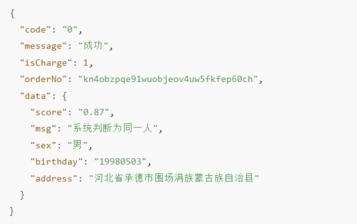 六、身份证三要素接口返回结果处理