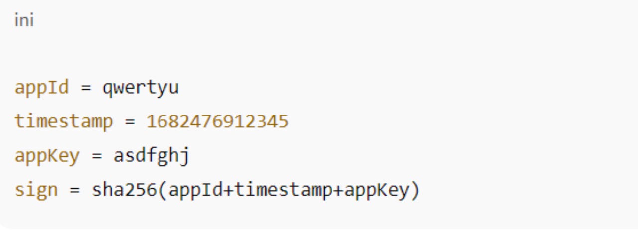 sign:签名(由appId+timestamp+appKey通过sha256加密得到)