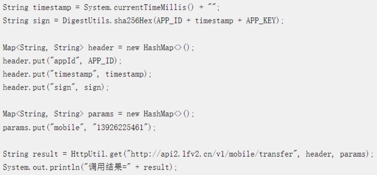 1.请求地址(API URL): http://api2.lfv2.cn/v1/mobile/transfer