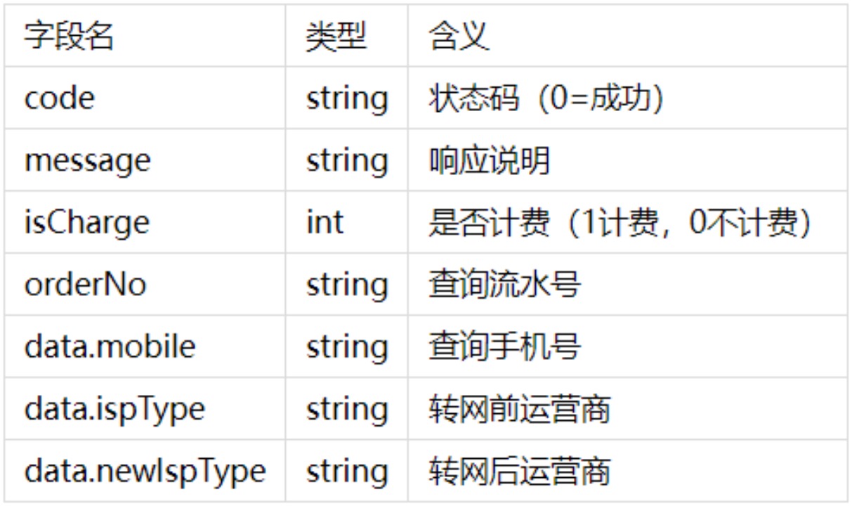 若 ispType 与 newIspType 不一致,表示号码已转网。
