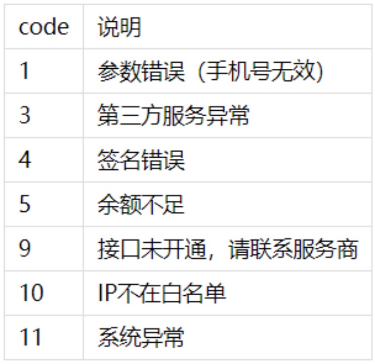 调用服务器IP必须加入服务商白名单,否则直接返回code=10.